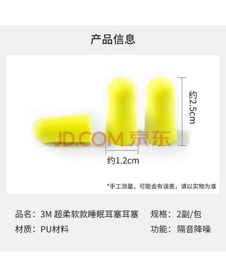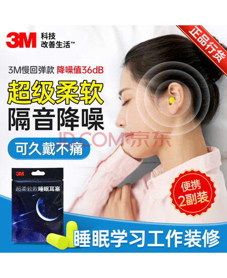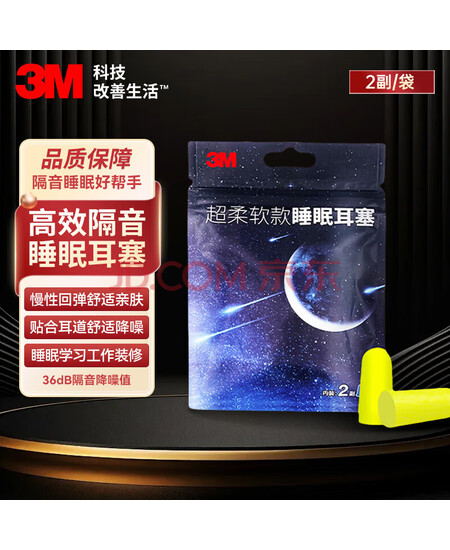 3M 耳塞睡觉隔音降噪耳塞防噪音睡眠工厂车间专用降噪36db 高降噪子弹型无线耳塞2副