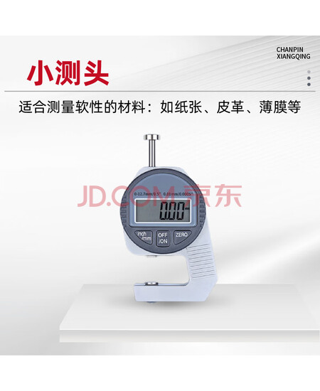 米茨 测厚仪 数显测厚规 电子数显厚度测量仪 不锈钢全金属纸张皮革薄膜厚度规 0-12.7mm/0.01/小头