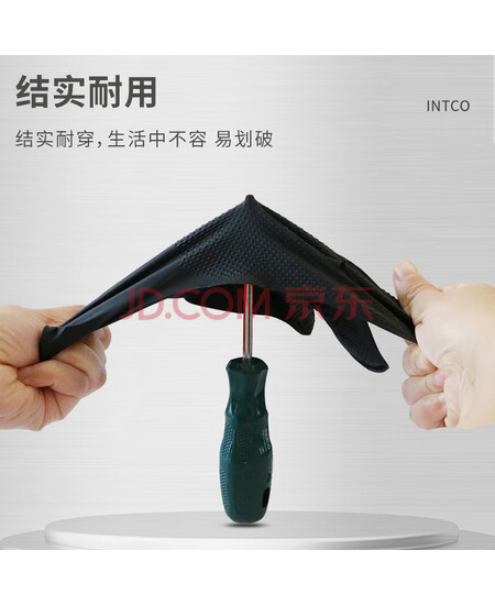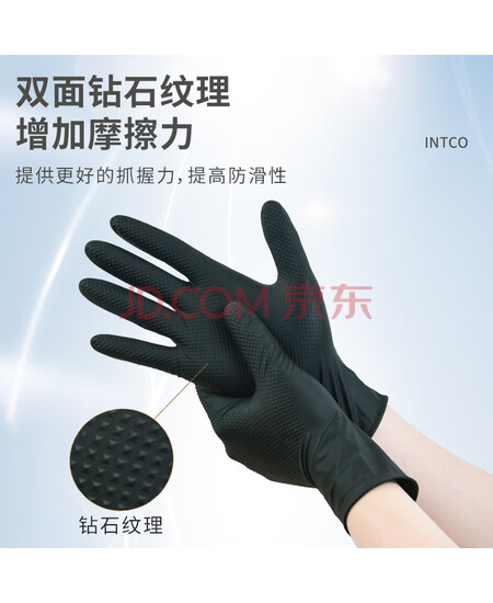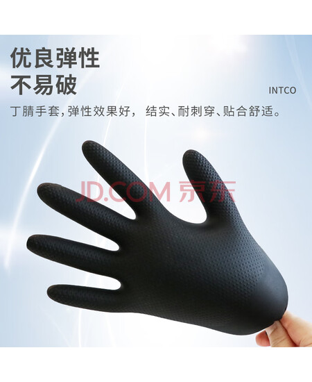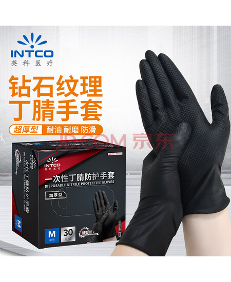 英科医疗一次性丁腈手套 超厚耐磨丁晴劳保 30只/盒 黑色 中号M码