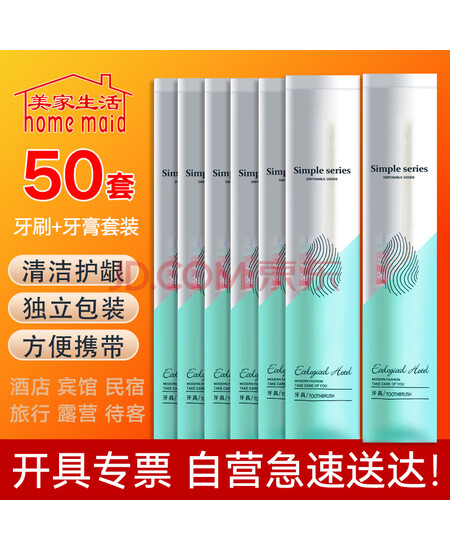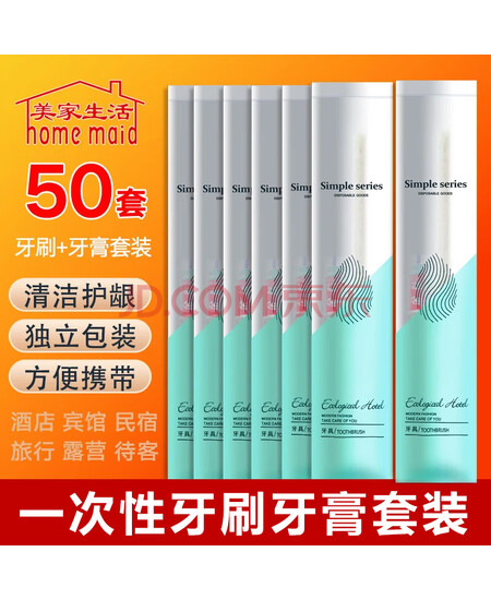 美家生活 酒店用品 一次性牙刷牙膏50套 豪华宾馆待客牙具二合一