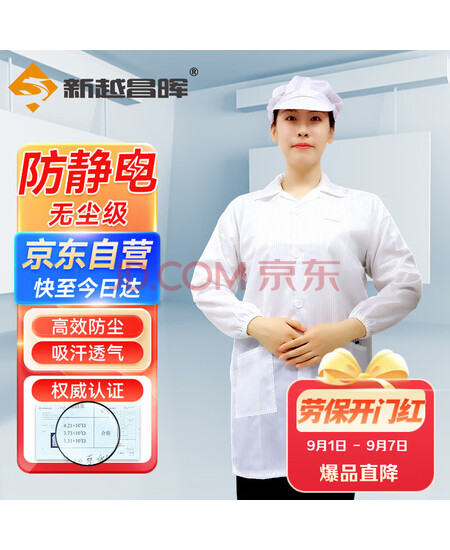 新越昌晖防静电白大褂 无尘工作服 净化防尘服车间工作衣男女L码