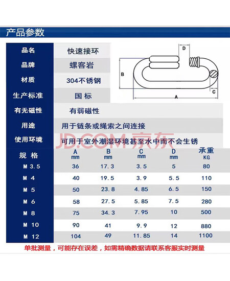 螺客岩988 不锈钢快速接环 链接扣 螺母扣 登山扣 链条扣 速降攀岩快挂主锁