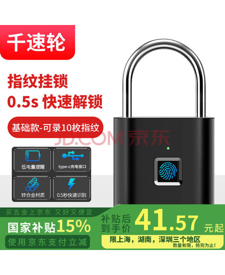 千速轮指纹智能挂锁指纹挂锁智能电子挂锁 黑色一把 基础款10个指纹