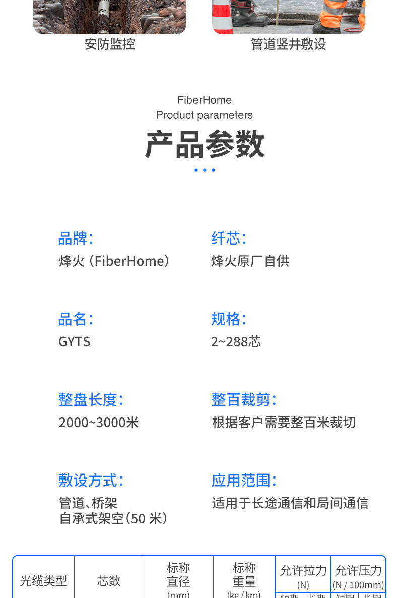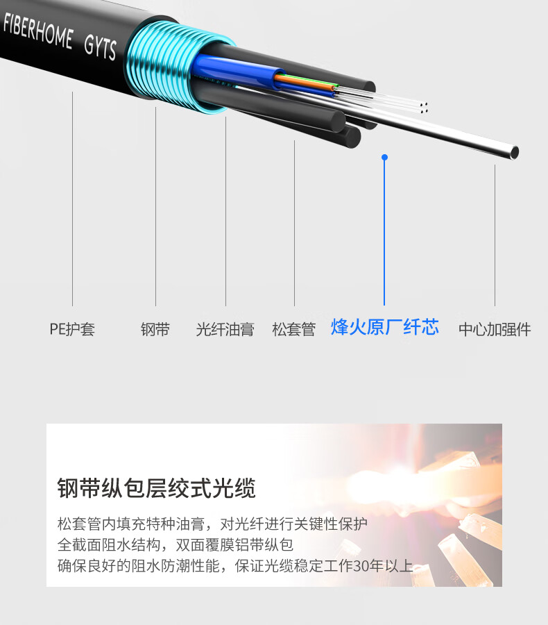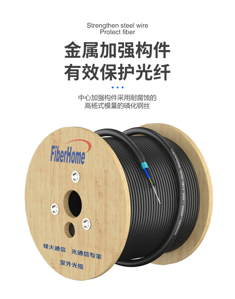 烽火(FiberHome)GYTS-24B1.3 电信级工程铠装24芯单模室外光缆 层绞式架空/管道光纤线 100米(可定制长度)