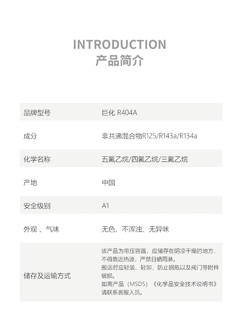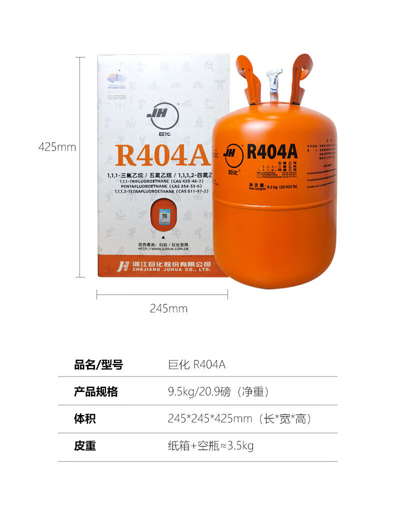 巨化 (JH) R404A制冷剂 实验室设备加氟冷媒 制热制冷设备加雪种 氟利昂 净重9.5kg/瓶 R404A
