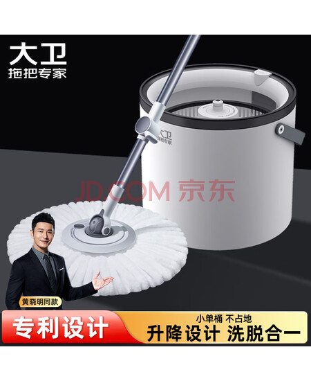 大卫旋转拖把35cm杆伸缩99-127cm 2头加厚拖布 N11单桶洗脱合一不占地