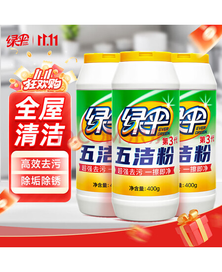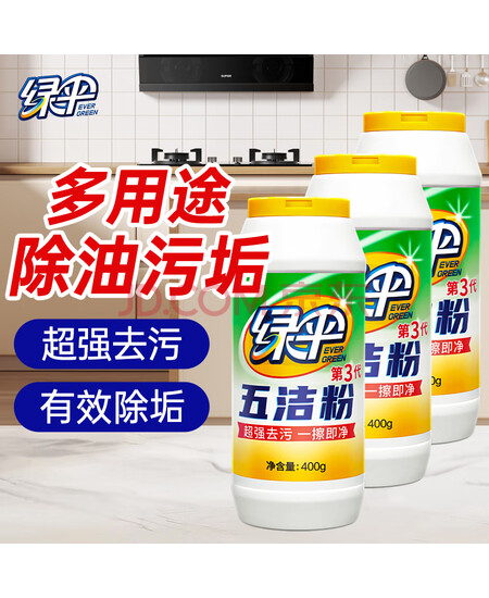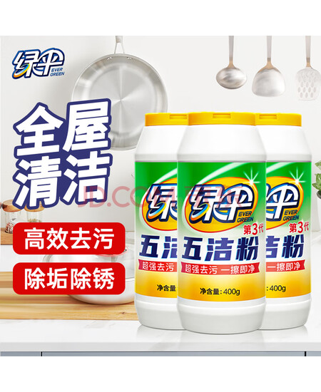 绿伞 五洁粉油污清洁剂不锈钢水槽除锈除垢去污渍抛光剂400g×3瓶