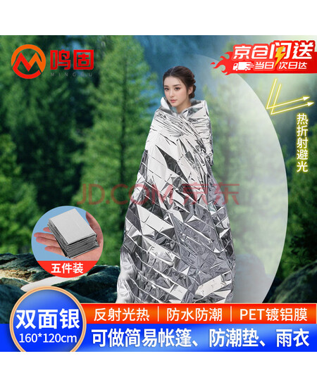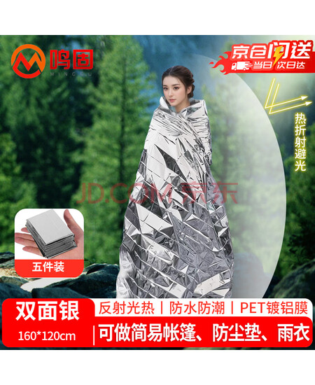 鸣固 急救毯 保温毯室外应急垫地震救生毯 双面救生毯 保温 防晒 双面银色160*210cm 5件装 CW142016