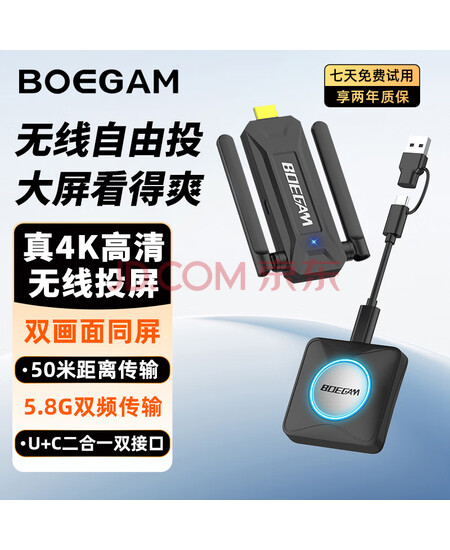 宝疆(BOEGAM)无线投屏器hdmi线4K高清传输同屏器企业办公家用适用苹果安卓手机接显示投影电视无需网络XS5D