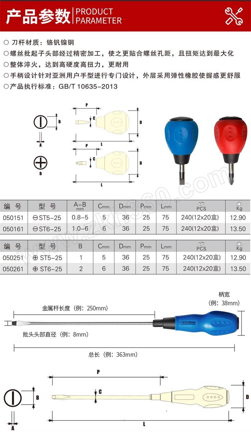 | 产品名称 | 橡胶柄十字螺丝刀 |
