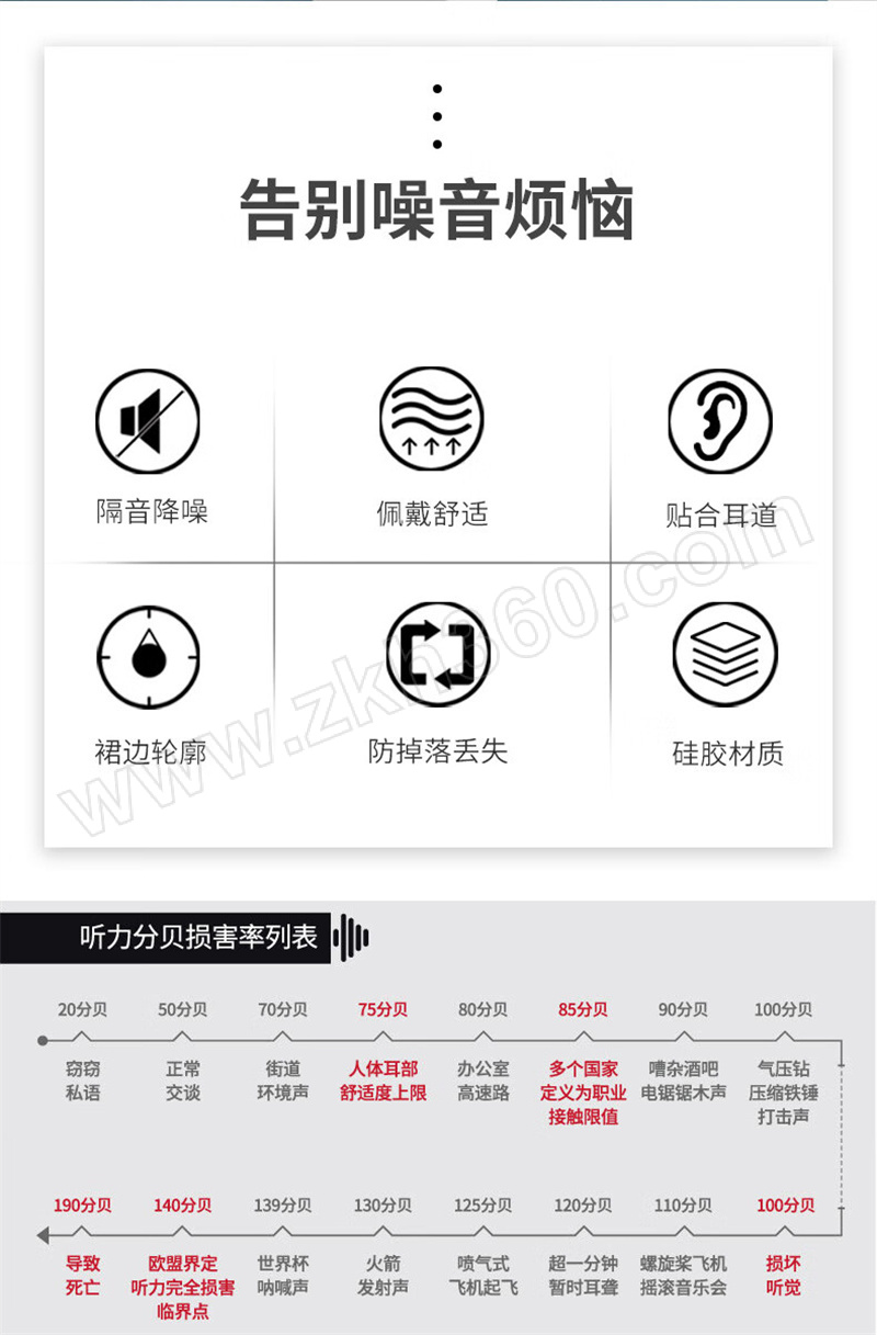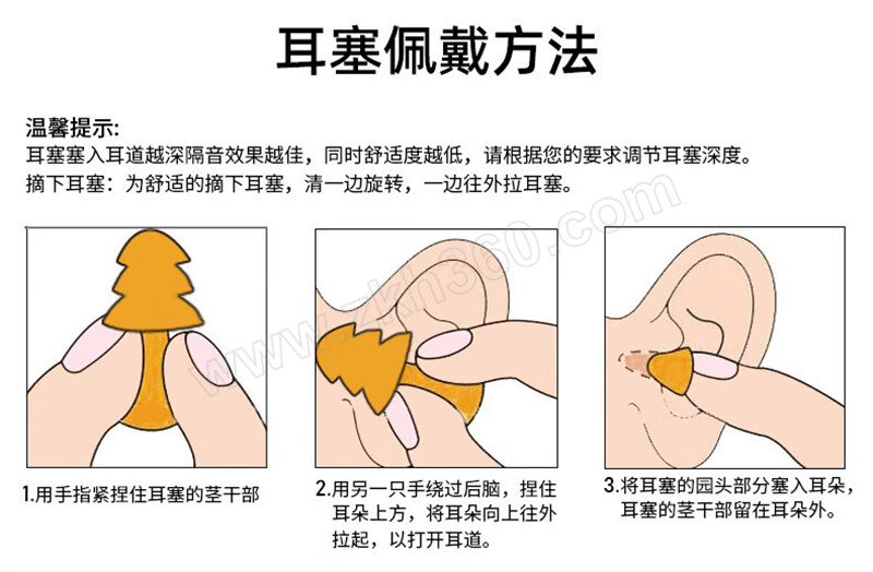 ·NRR:25dB SNR:32dB ·可反复清洗使用的耳塞 ·三层裙边设计,佩戴舒适,密合良好 ·贴合耳道的椭圆形设计 ·无需揉搓,使用方便 ·细绳柔软、防缠绕,防止耳塞丢失