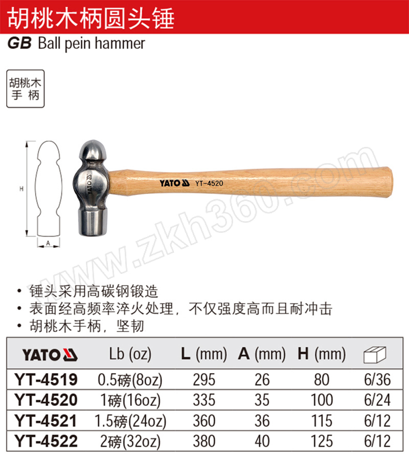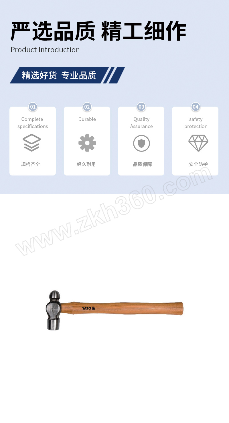 ·锤头采用优质高碳钢锻造。 ·表面经高频率淬火处理,不仅强度高而且耐冲击。 ·胡桃木手柄。