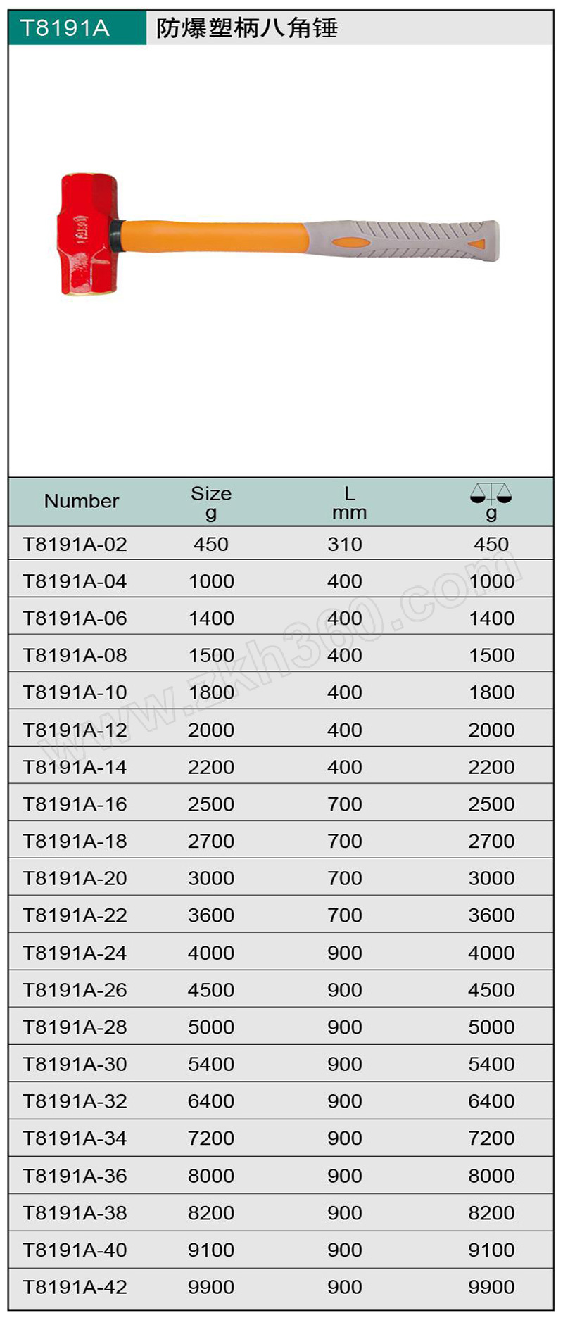 | 产品名称 | 191A系列铝青铜防爆塑柄八角锤 |