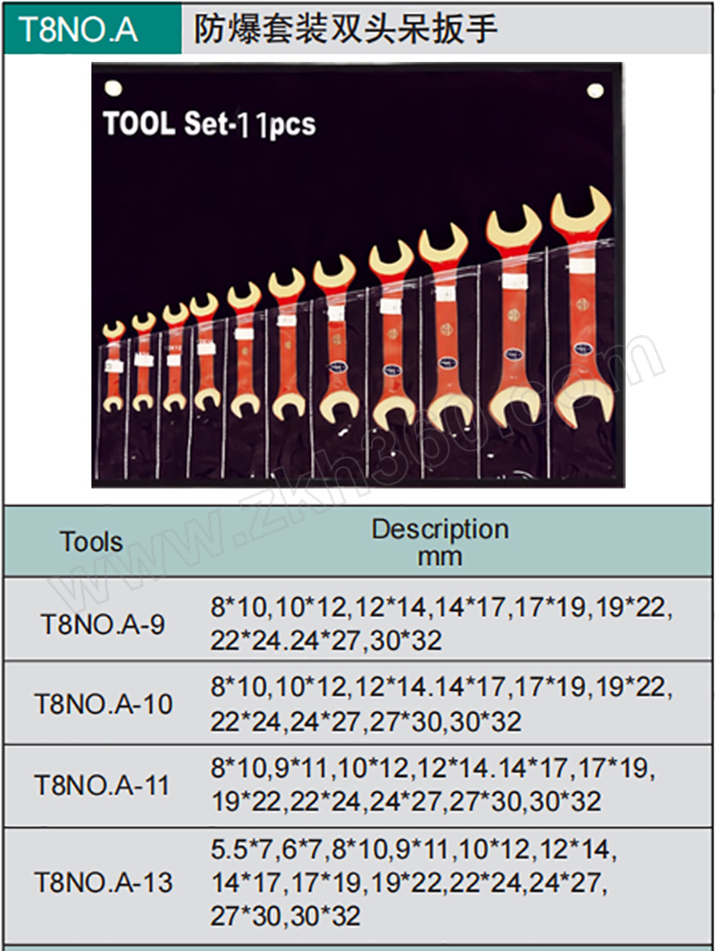 | 产品名称 | A系列铝青铜防爆套装双头呆扳手 |