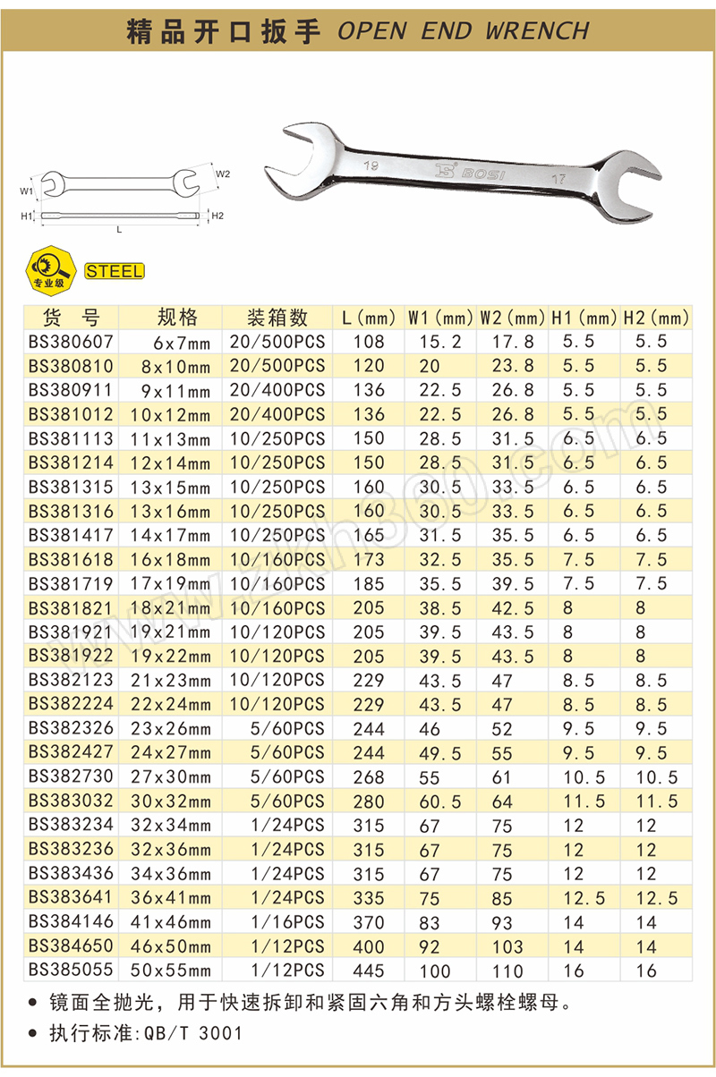 | 产品名称 | 开口扳手 |