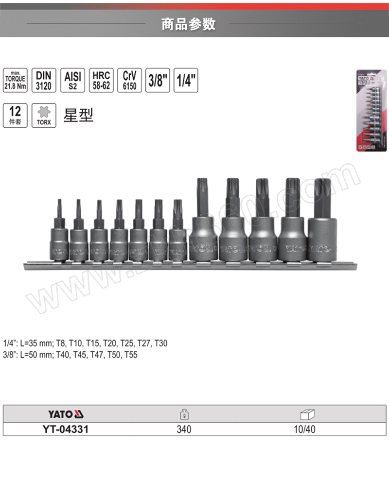 | 产品名称 | 1/4~3/8"星型旋具套筒组套 |