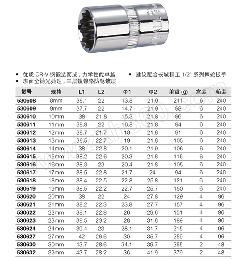 | 产品名称 | 12.5mm系列公制十二角套筒 |