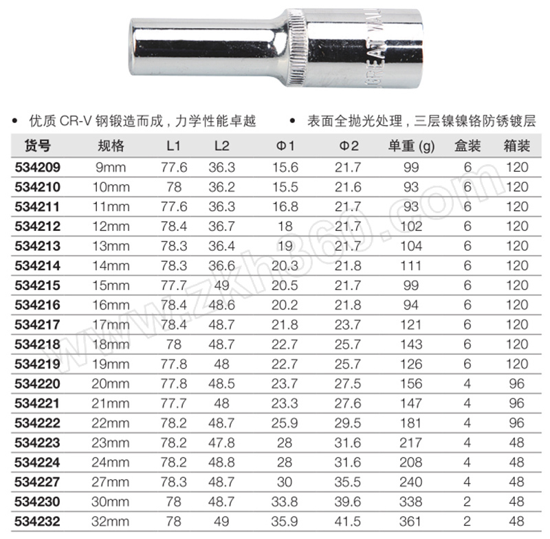 | 产品名称 | 12.5mm系列公制十二角长套筒 |