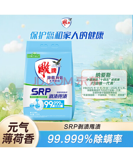 雕牌 除菌有氧洗衣粉 元气薄荷香 2.6斤 SRP剥渍甩渍 3倍溶解速度