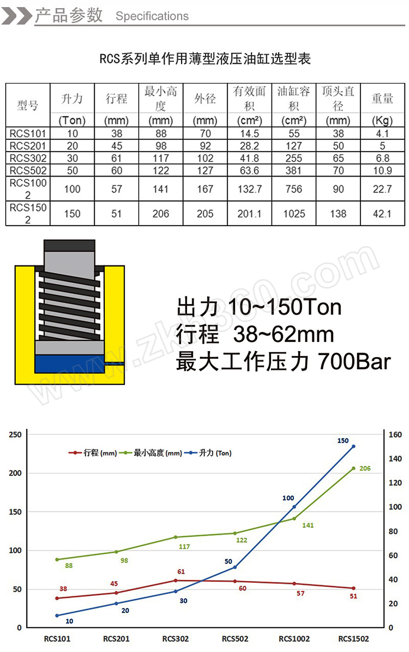 | 产品名称 | RCS系列单作用薄型液压油缸 |