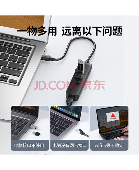 绿联USB转百兆网口扩展坞分线器 外置有线网卡网线转接头 适用笔记本台式电脑拓展HUB集线器RJ45转换器