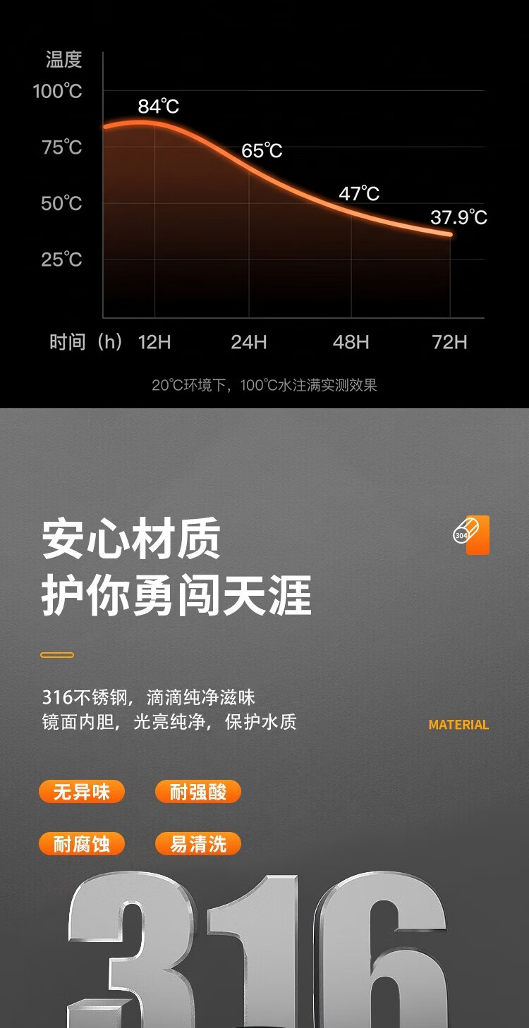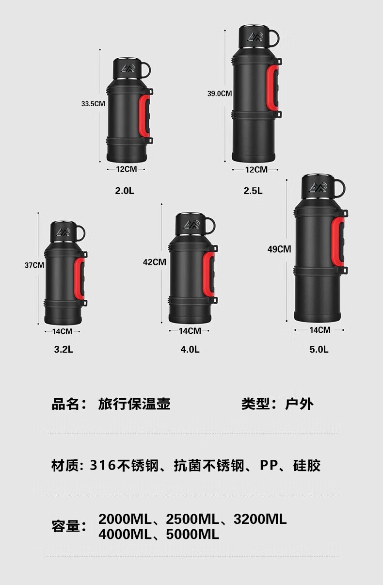 慕馨(moosen)保温壶户外大容量保温杯72小时外出便携式水壶316不锈钢钓鱼露营