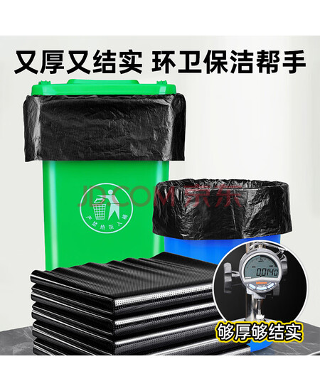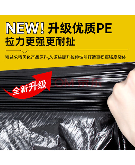 简丫平口垃圾袋黑色90*100cm50只1.4丝加厚款大号商用酒店物业塑料袋