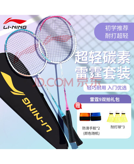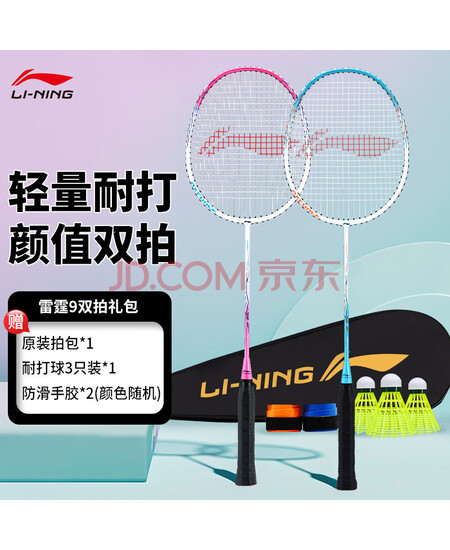 李宁(LI-NING)羽毛球拍雷霆9碳复合对拍碳素中杆娱乐休闲初学者已拉线送球手胶