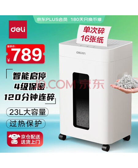 得力碎纸机 大吞吐长时间碎纸4级保密低噪碎纸大型商务办公商用家用 单次16张120分钟连碎GA330