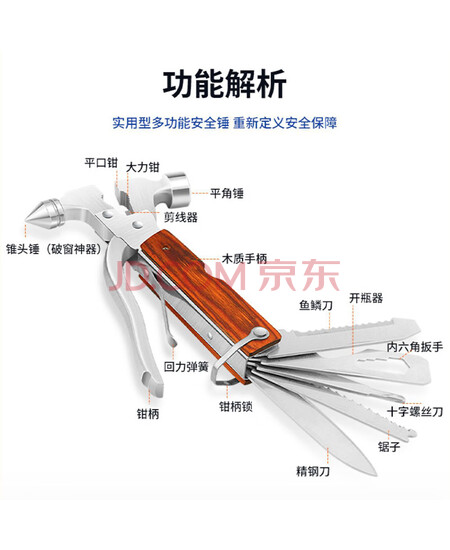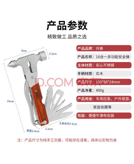 共泰 汽车安全锤 多功能16合1家车两用救生锤工具组合钢制破窗器