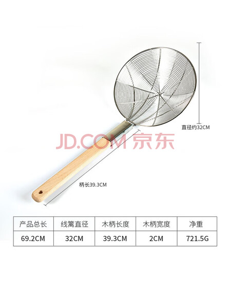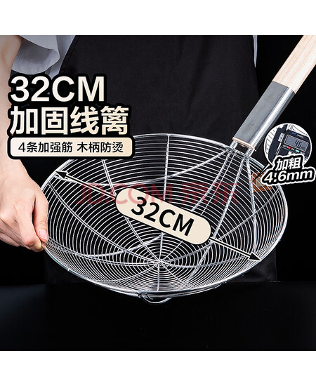 特美居不锈钢漏勺过滤细网笊篱密漏勺网筛家用长柄捞面漏勺大号商用32cm