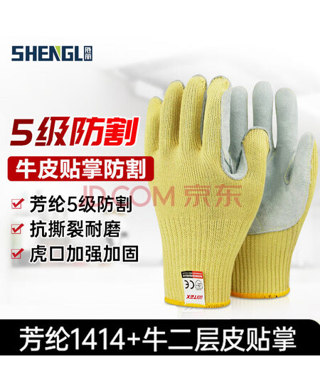 胜丽 NITEX® 5级防割手套劳保牛皮贴掌防切割手套 NA630 S码