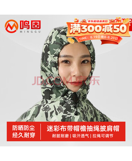 鸣固 薄款防尘披肩风帽迷彩布防粉尘劳保男女搬运工作透气 迷彩布披肩帽 CW682178