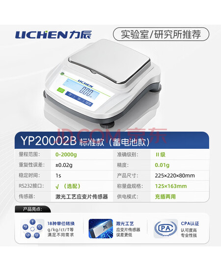 力辰(LICHEN)大量程电子天平实验室大称量天平高精度百分之一珠宝黄金商用电子秤YP20002B