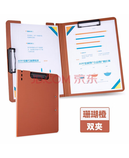 天色 A4文件夹板双夹折页板夹 会议夹秘书夹资料夹试卷夹签字签约呈阅夹 办公用品 TS-10002 珊瑚橙