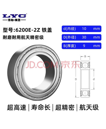洛轴/LYC 6200E-2Z 10*30*9 铁封 深沟球轴承轴承型号大全