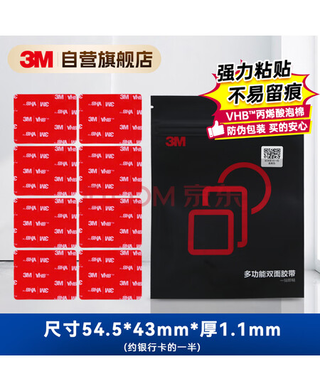 3M强力双面胶 高低温通用VHB™胶带 防水无痕车载etc粘接 GPL110灰色 54.5*43mm*8片