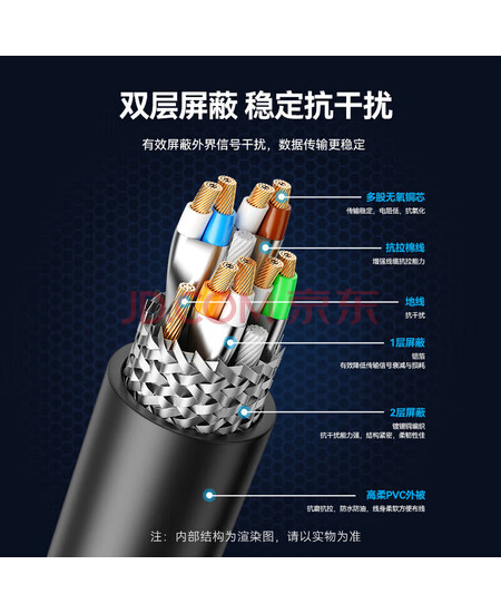 威迅超六类双屏蔽工业高柔相机网络跳线IBUBJ黑色5米