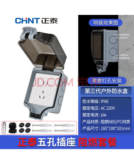 正泰防水插座盒明装阻燃 室外开关暴雨防溅盒保护盖+正五孔10A