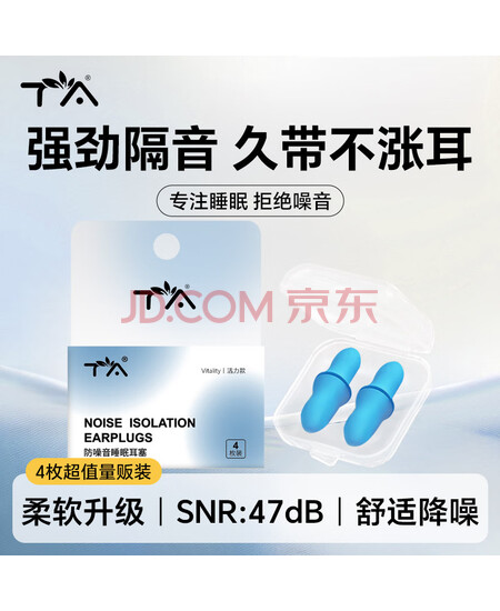 TA 防噪音睡眠耳塞超强隔音工作学习防呼噜男女士睡觉睡眠专用耳塞 珊瑚蓝4枚