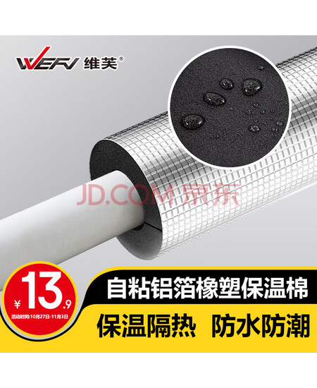 维芙WEFV自粘橡塑保温棉水管防冻加厚隔热材料室外管道太阳能保温管套