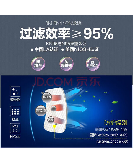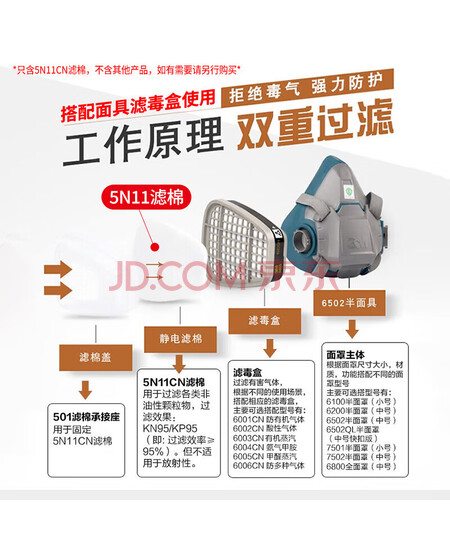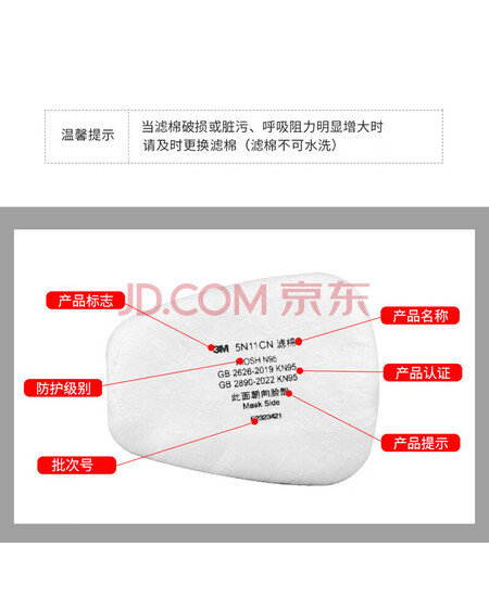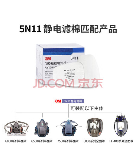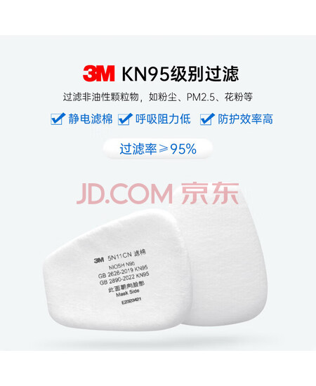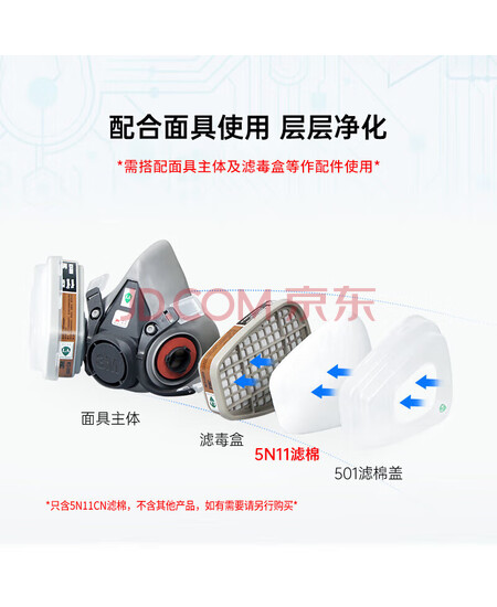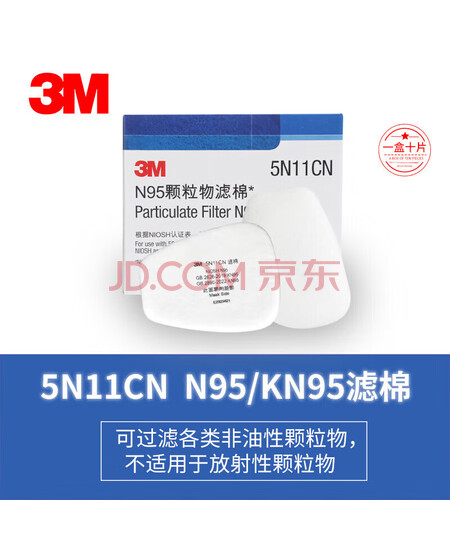 3M 5N11CN KN95滤棉 防颗粒物喷漆化工农药 搭配6200 6800 7501 7502防毒面罩使用 10片/盒