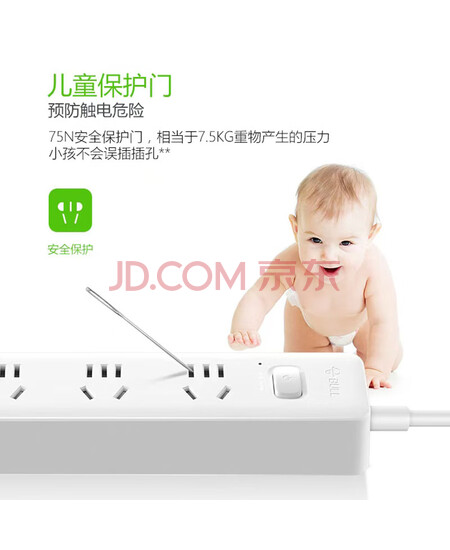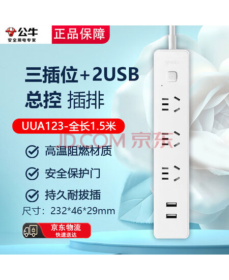 公牛(BULL)三位二三插USB口多孔GNV-UUA123 1.5米 排插座接线拖线板 总控开关 纯白简约时尚