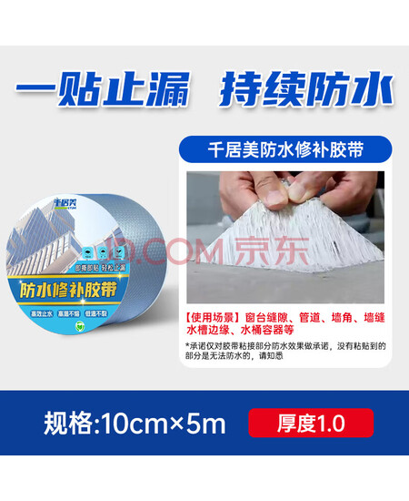 千居美 屋顶丁基胶防水胶带强力补漏材料房顶漏水防漏贴卷材10cm*5m 1卷