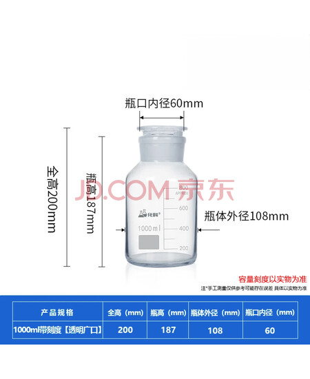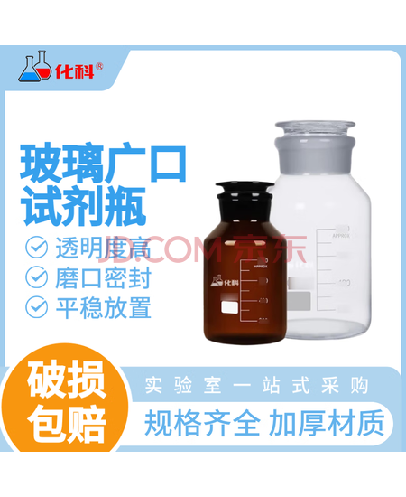 化科 玻璃广口试剂瓶加厚密封磨砂大口样品瓶化学试剂瓶实验室广口瓶 【3只】广口1000ml 透明带刻度