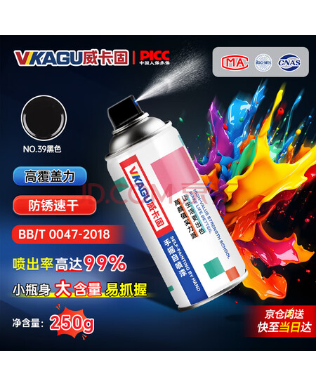 威卡固(VIKAGU)手摇自喷漆防腐防锈漆金属漆划痕修复改色DIY涂鸦350ml NO.39黑色