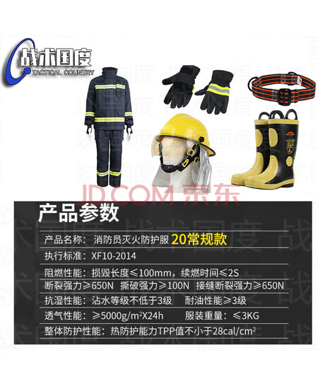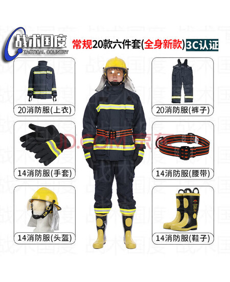 战术国度 20款3C消防服6件套常规款 国标消防认证灭火救援消防员战斗服套装六件套 衣服180鞋子43码