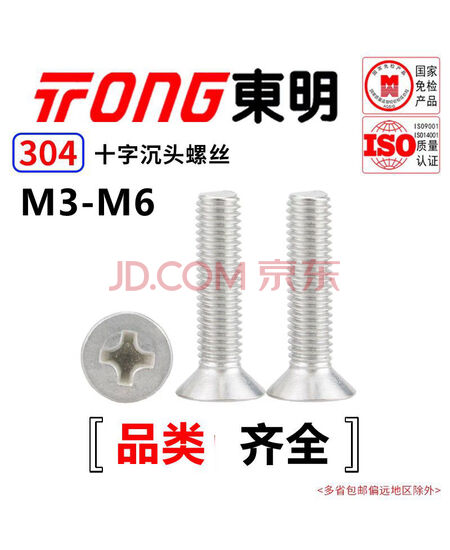TONG东明 304不锈钢 十字沉头机螺钉 GB819 M3-M6 M3 *12 (100支/袋)