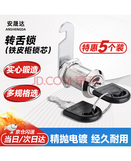 安晟达 转舌锁 铁皮柜锁芯 电箱锁 文件柜锁 信箱锁 抽屉锁 更衣柜门锁 25mm单开 5个装