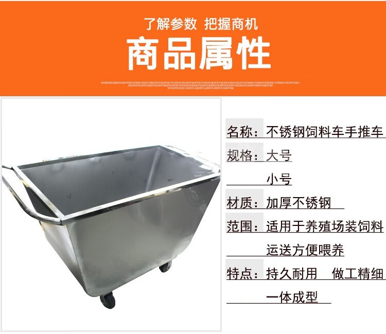 挚凌猪场饲料车手推车塑料饲料斗饲料运输车养殖场加厚喂不锈钢饲料车 不锈钢手推